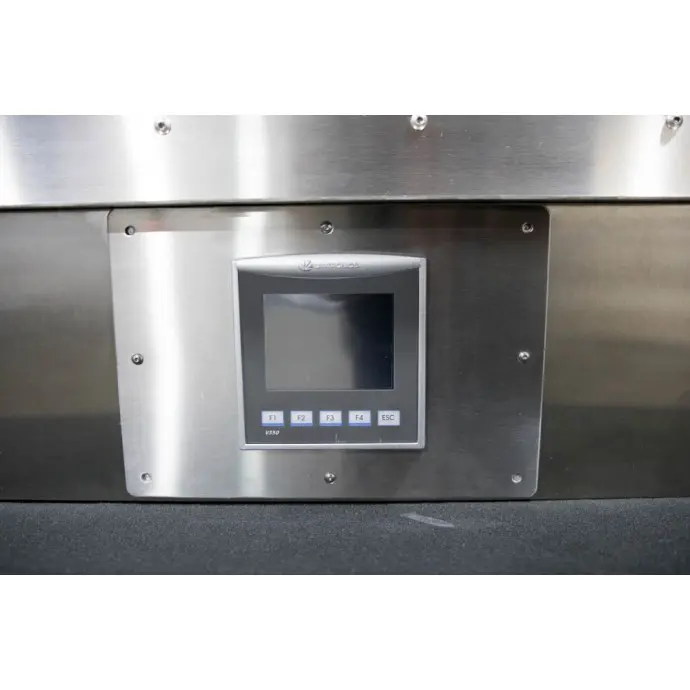 This tabletop vacuum sealer is made from high-grade 304 stainless steel and an aniodized aluminum frame. It's perfect for medium to high production use and comes with dual 0.25" heating elements, Unitronics color touch screen, single-ported exhaust, Venturi vacuum pump, and dual retractable nozzles as standard features.
