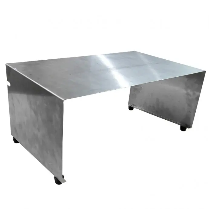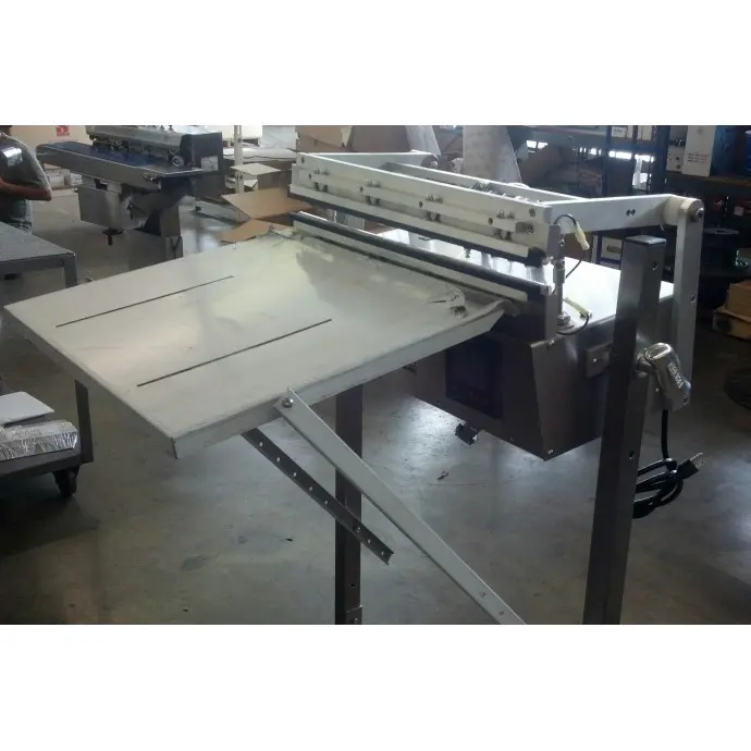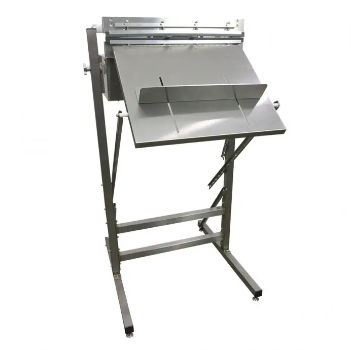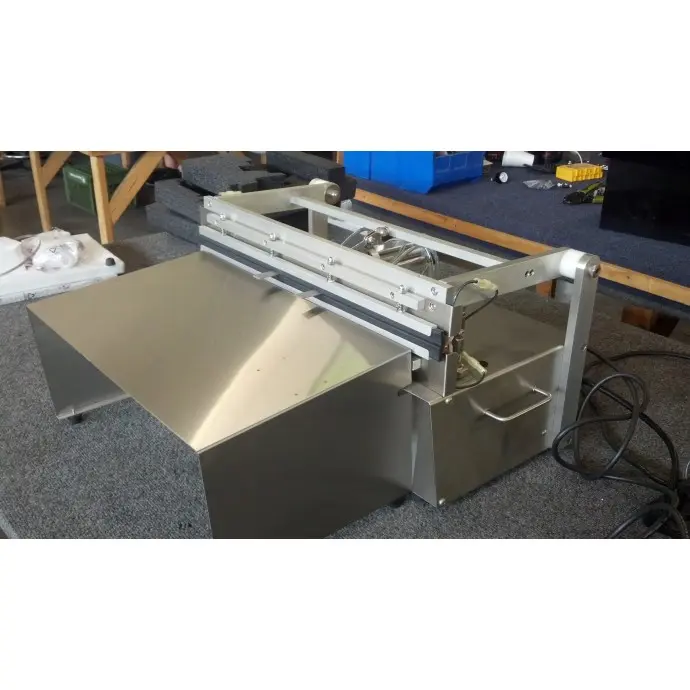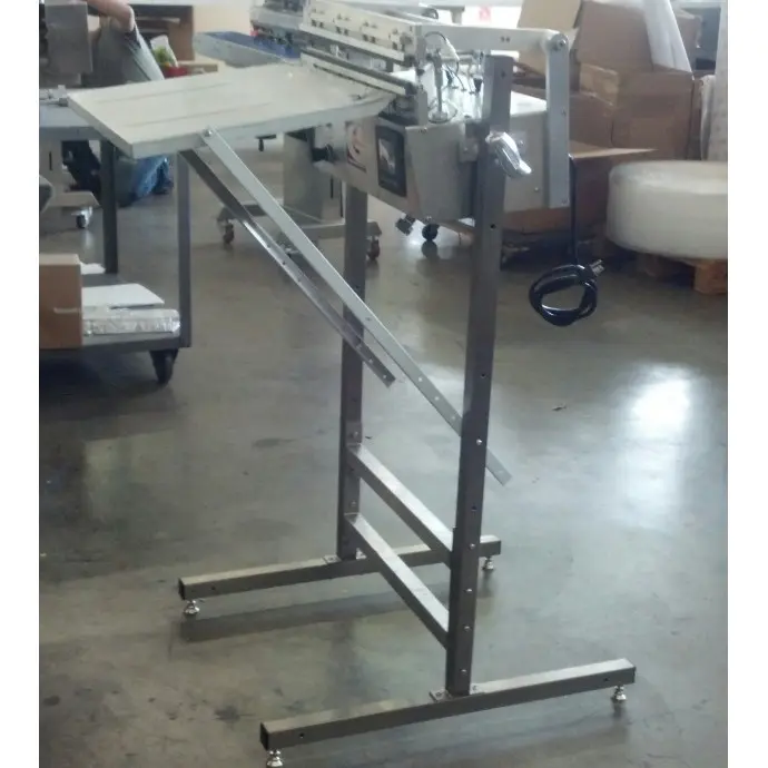 The stainless steel feeder tray is a small shelf which is placed against the front of the unit and allows the bag to be at the jaw height for easier sealing of small to medium sized parts.