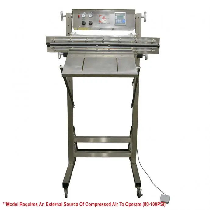 - Mobile Stainless Steel Stand capable of providing 90° sealer head rotation for vertical applications and adjustable height for starting at 37" from the ground to 40", 43", 46", 49", and 52"