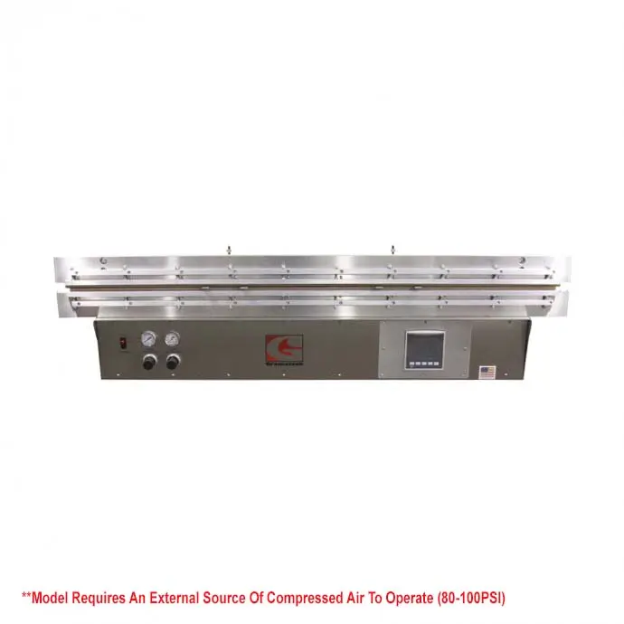 - Pneumatic Safety-System: Prevents accidental operator injury by use of a back-pressure sensitive micro switch to prevent jaws from locking down in the event an unwanted object (i.e. hand or finger) is present in the seal area.