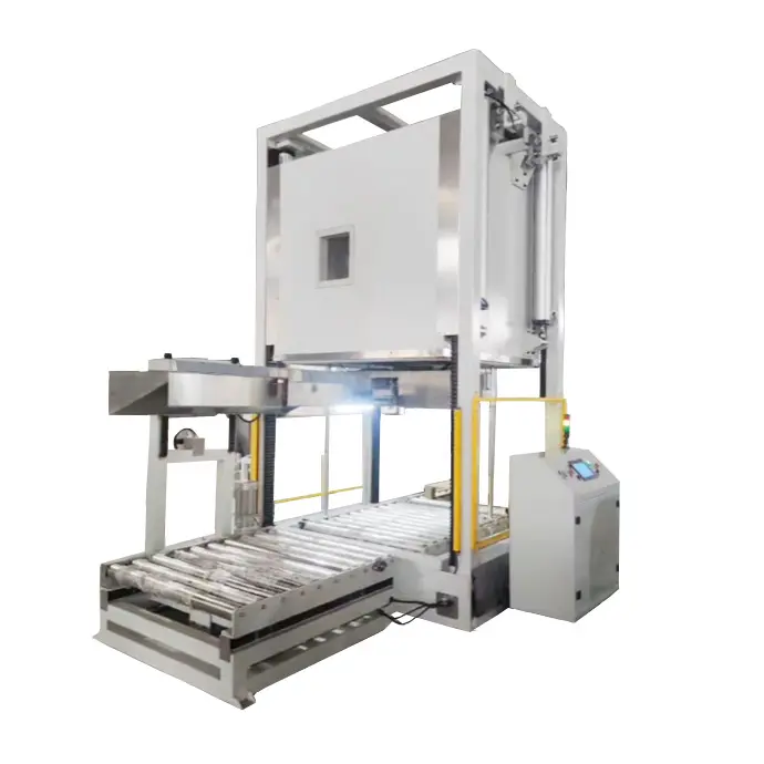 Industrial packaging machine for FIBC liner, or large Gaylord liners. Comes with conveyor to load and ready, along with a desending shround to provide a pressurized vacuum environement - making sure the interior is as oxygen free as possible. Please note this is a very large system, and will require some planning before purchase and installation. Please contact our Sales Team for more information.