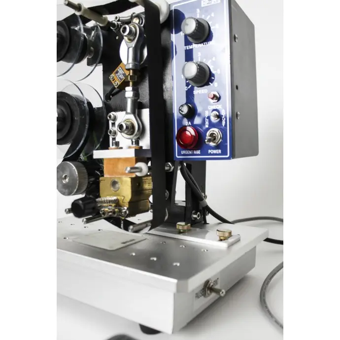Print up to 15 characters each on three printing lines. The type size is 2mm wide by 3mm high, in an Arial Narrow font style. Up to 120 prints per minute are possible for the operator. Adjustable temperature for efficient printing on different types of materials including plastic bags, paper, polypropylene, polyethylene, laminates and even cardboard.