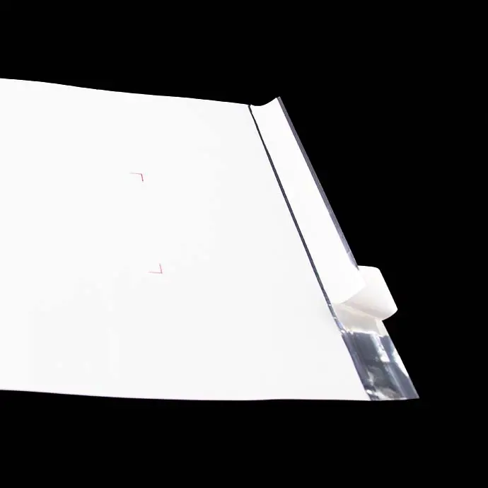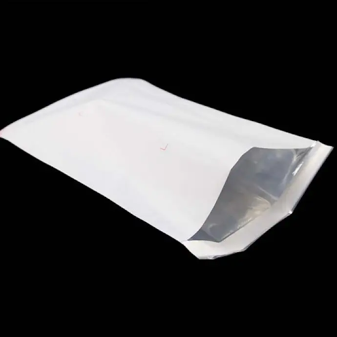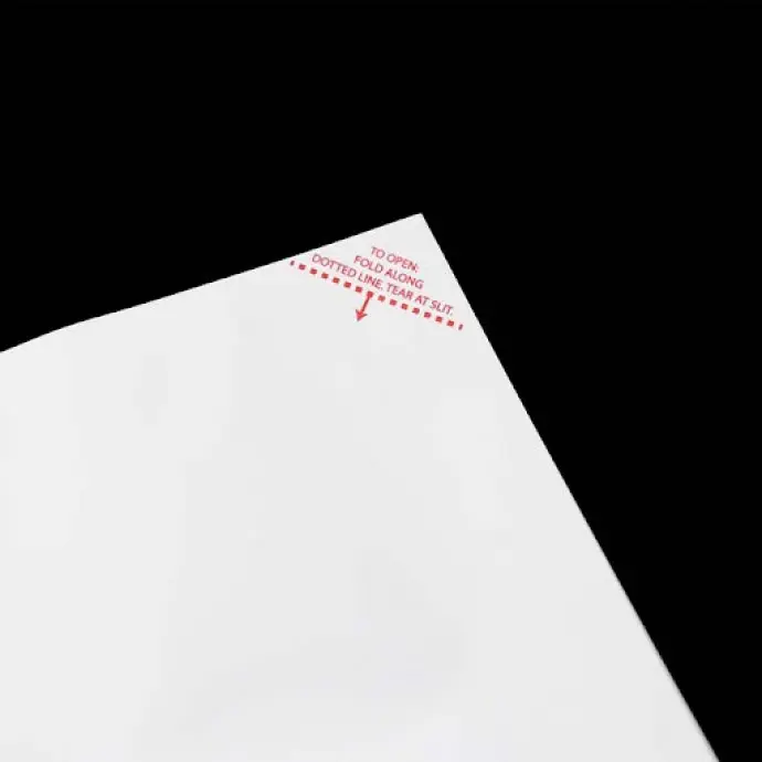 Fill through top, remove tape from adhesive strip, fold over and seal. Heat sealer not required.