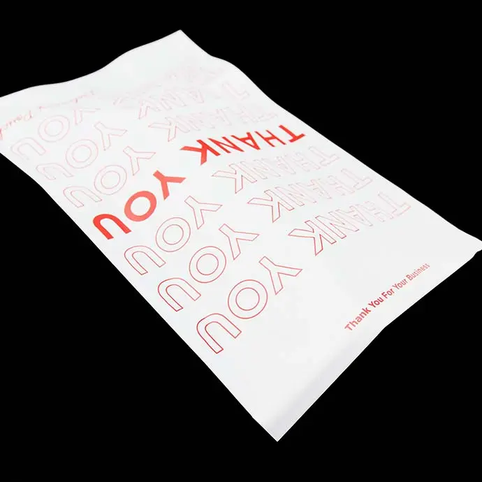 9.0" x 13.0" x 1.0" O.D Custom printed 3 side seal delivery pouch with child resistant tear slit, Load Lip and adhesive tape - pre-printed with "Thank You"