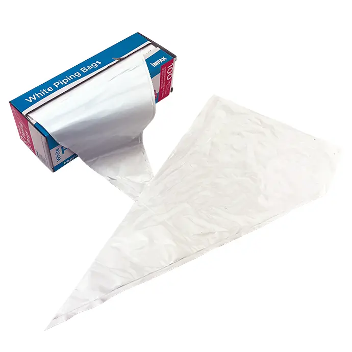 These classic piping bags for cake decoration or other bakery projects are made from food safe polyethylene and measure 9.0 inches wide and 17.75 inches long after being removed from the roll. Each of these piping bags has a secure side seal with angled bottom seal for a detail-ready piping tip.