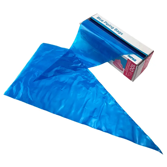 These classic piping bags for cake decoration or other bakery projects are made from food safe polyethylene and measure 10.25 inches wide and 20.125 inches long after being removed from the roll. Each of these piping bags has a secure side seal with angled bottom seal for a detail-ready piping tip.