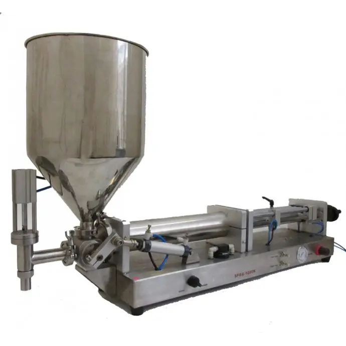 Pneumatic piston filler for liquids, cosmetics, oils, creams and sauces