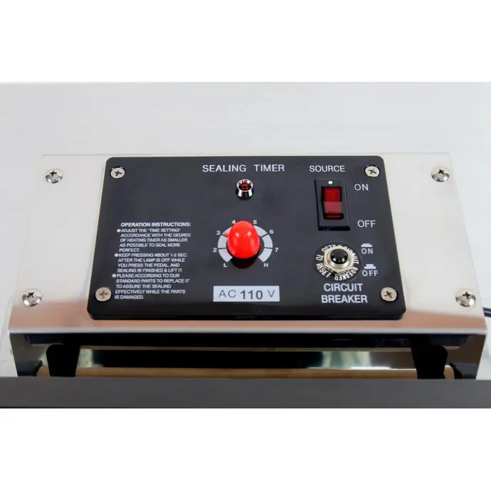- Set the sealing time according to the thickness of your bag material. (Always start with the minimal setting and slowly increase time as needed to determine accurate time that achieves integral seal for your bag.)