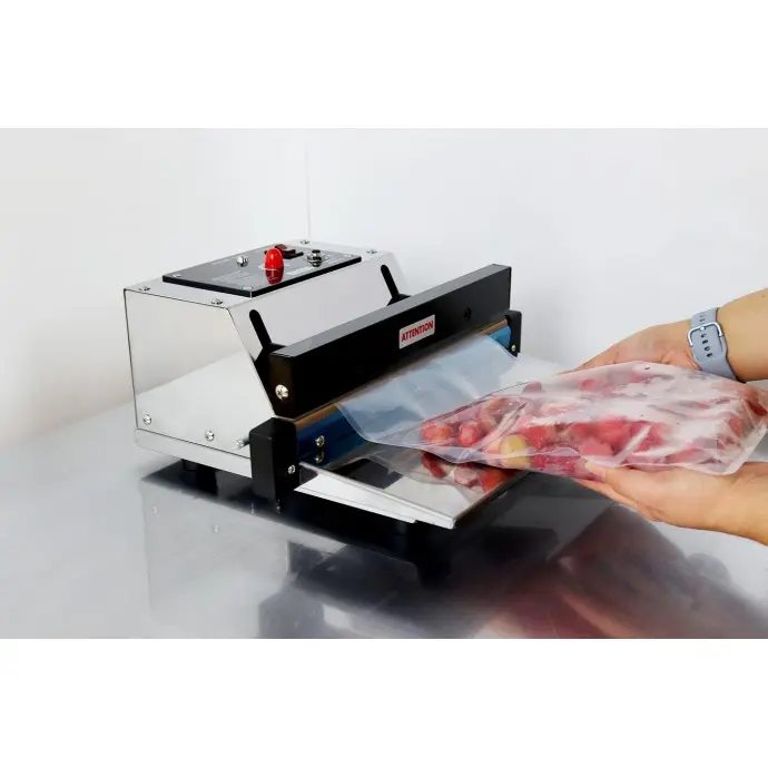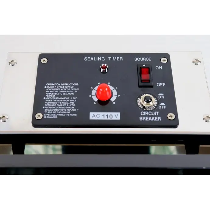 - Set the sealing time according to the thickness of your bag material. (Always start with the minimal setting and slowly increase time as needed to determine accurate time that achieves integral seal for your bag.)