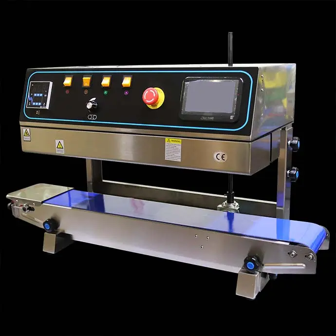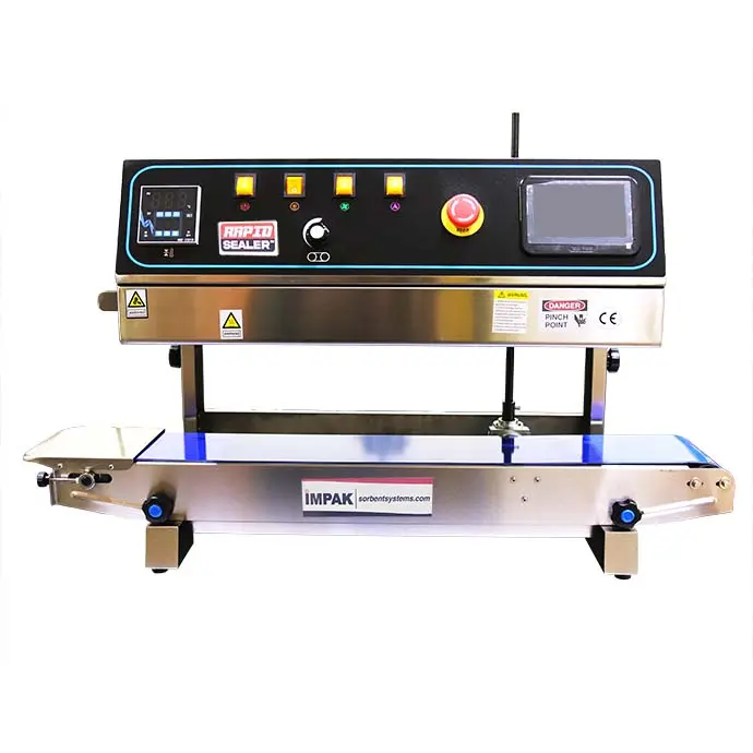 This PrintRapidTM Pro Vertical band sealer takes some of the best parts of our RapidSealers and adds a built-in Ink Jet Printer. This belt sealer is designed to be set up and running in no time for a fantastic all in one packaging line. Simply plug in the printer cartridge and expand your production line with in-line printer options like QR/barcodes, expiration dates, or lot numbers. The 5 inch touchscreen allows you to draft and store all your print designs to reuse.