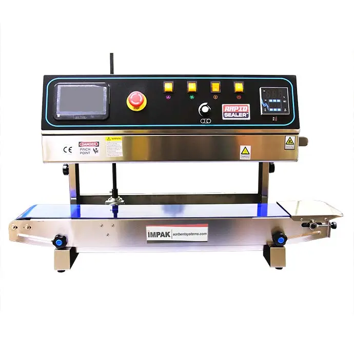 This PrintRapidTM band sealer takes some of the best parts of our RapidSealers and adds a built-in Ink Jet Printer. This belt sealer is designed to be set up and running in no time for a fantastic all in one packaging line. Simply plug in the printer cartridge and expand your production line with inline printer options like QR/barcodes, expiration dates, or lot numbers. The 5 inch touchscreen allows you to draft and store all your print designs to reuse.