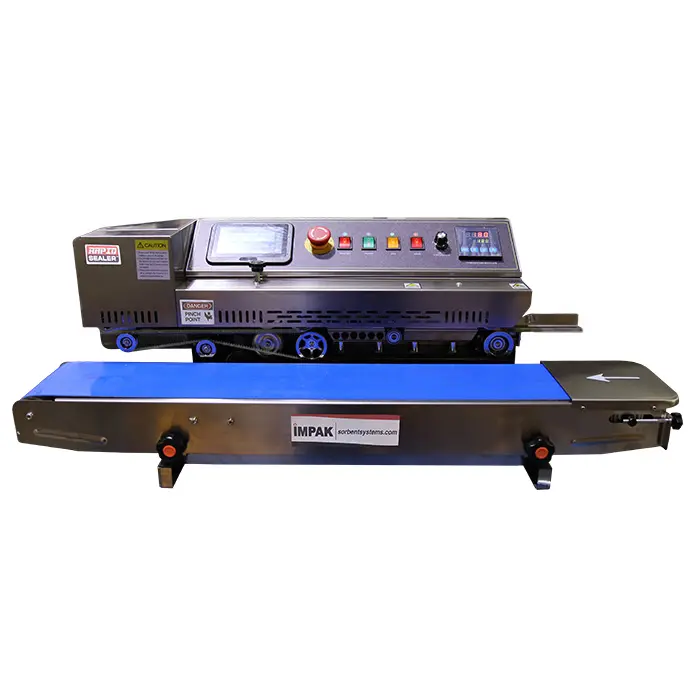 This PrintRapidTM band sealer takes some of the best parts of our RapidSealers and adds a built-in Ink Jet Printer. This belt sealer is designed to be set up and running in no time for a fantastic all in one packaging line. Simply plug in the printer cartridge and expand your production line with inline printer options like QR/barcodes, expiration dates, or lot numbers. The 5 inch touchscreen allows you to draft and store all your print designs to reuse.