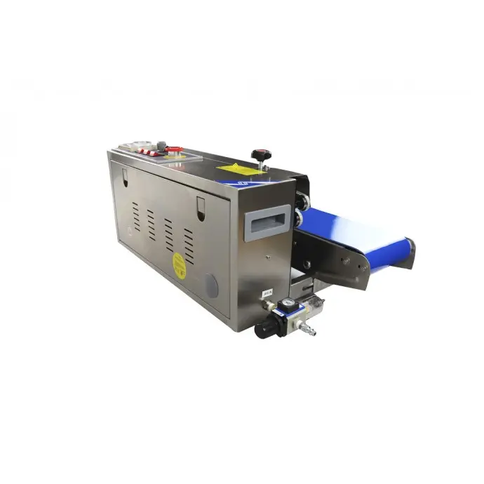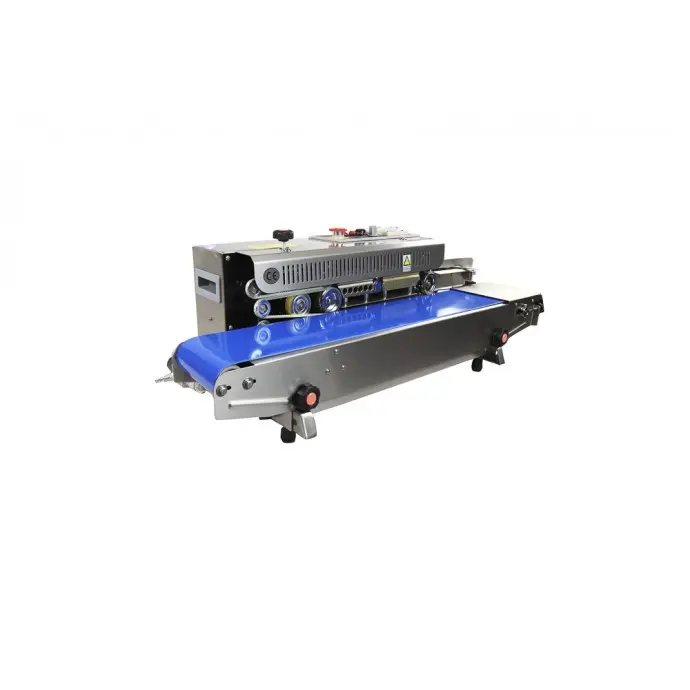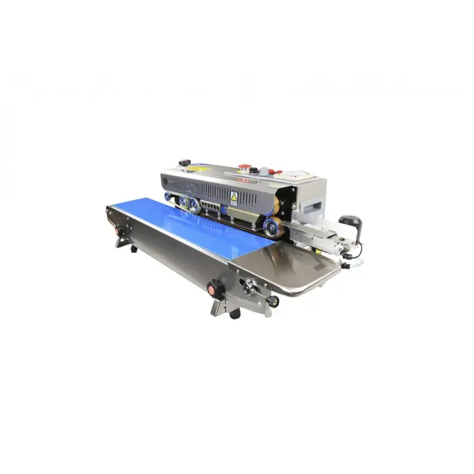 A continuous band sealer equipped with a stainless steel vacuum nozzle to remove oxygen and increase shelf life as well as offer immobilization for sensitive products.