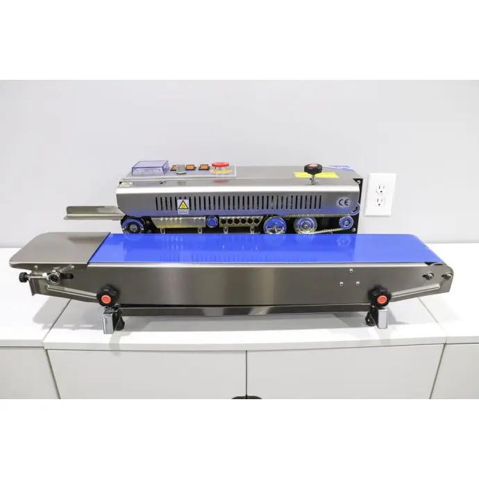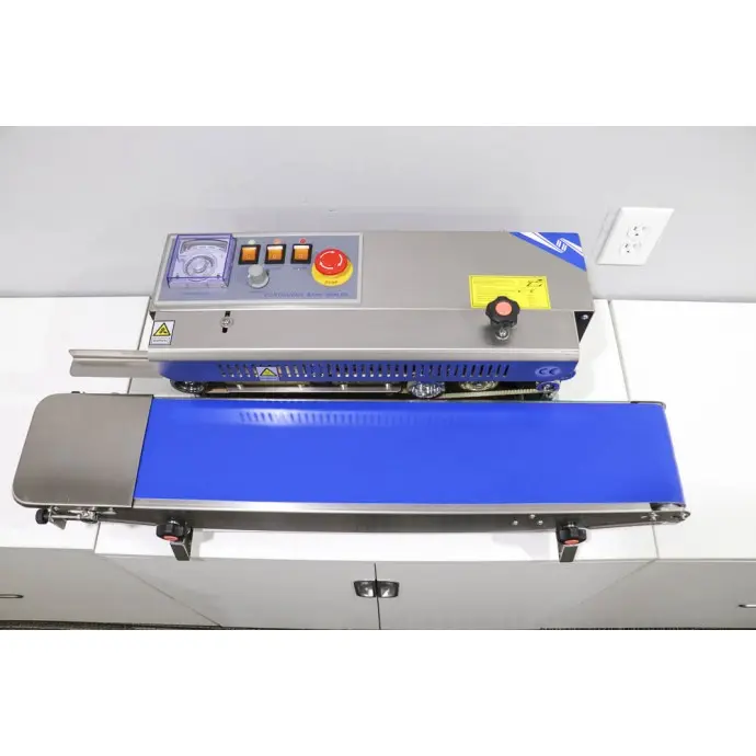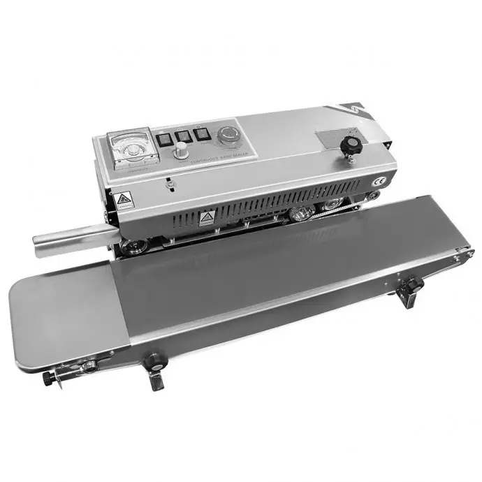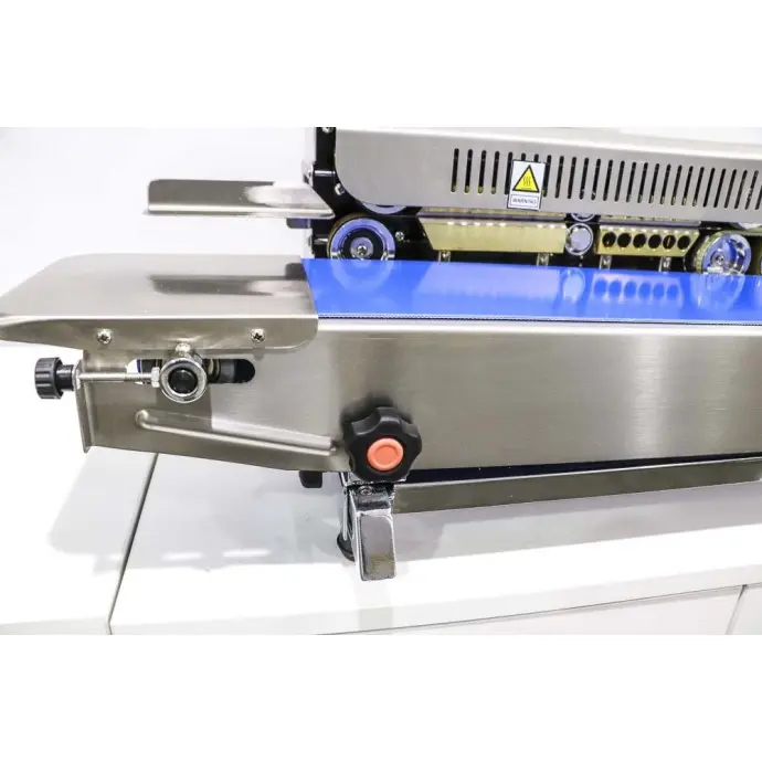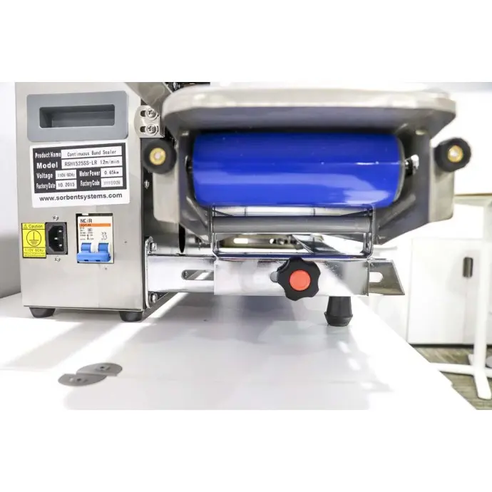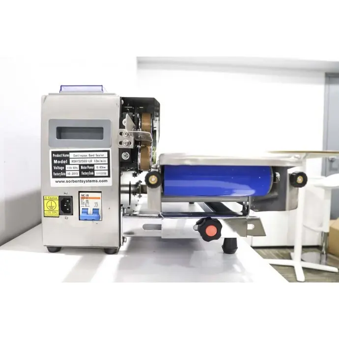 This horizontal tabletop RapidSealer TM (Band Sealer) is designed to be used almost right out of the box, and can be set up in 5-10 minutes. This sealer has a left to right configuration and the bag is fed from the left side of the unit.
