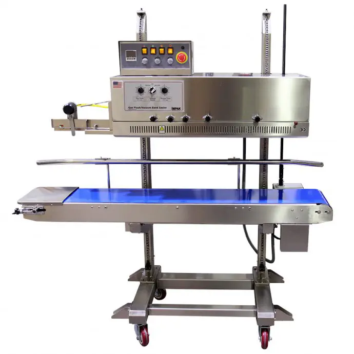 As a natural addition to our highly successful VakRapid series of continuous band sealers, the IMPAK VakRapid2.5 continuous band vacuum and gas flush sealers set the standard for high speed bagging of food, medical, pharmaceutical and electronics applications that require optimum freshness and shelf life. The VakRapid Series provides high quality, hermetic seals on all moisture-barrier bag materials. The vacuum and nitrogen gas flush system removes up to 99% of oxygen, depending on the application, and creates a low moisture package. It is an ideal solution for food, medical, pharmaceutical, electronics and other products that need added protection against decomposition. The gas flush system also can be used to create a cushion like buffer to protect contents from damage. The VakRapid is economical when compared to other sealers that offer nitrogen gas flushing for air removal. The VakRapid model includes a vacuum cycle after gas flushing to allow virtually oxygen free vacuum-sealed product bags. Comes with a dry ink printing system and a small kit of the most common letters and numbers. Additional accessories available.