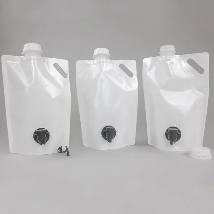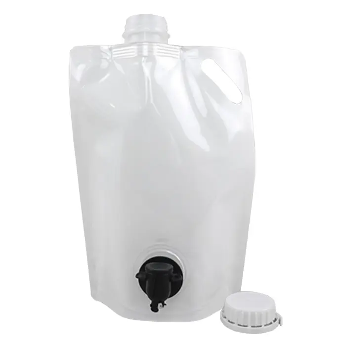 This portable and reusable fill-n-go SpoutPAK™ pouch is a popular choice for takeaway wine, cold brew, tea, and other beverages. It has two filling options - either through the convenient capped fitment on top or through the tap spigot at the bottom. The tap spout / spigot allows easy beverage dispensing when the bag is in standing position. Features a durable handle that makes the bag easy to carry.