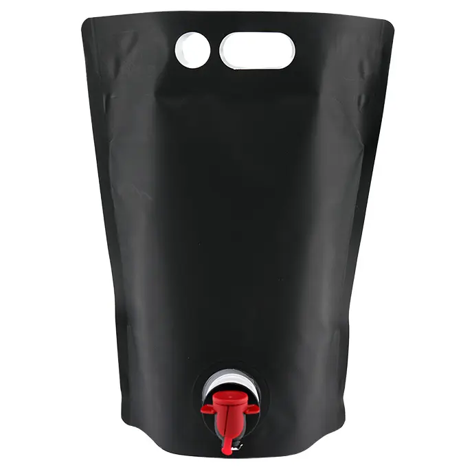 This bag is the ideal size for liquid dispensing requirements. The sturday bottom helps it stand stably when filled. The bottom Vitop fitments provide a steady flow when pouring it's contents. Comes with a built in handle to make trips and outdoor events easy. Can also be custom ordered wit custom labels or print.