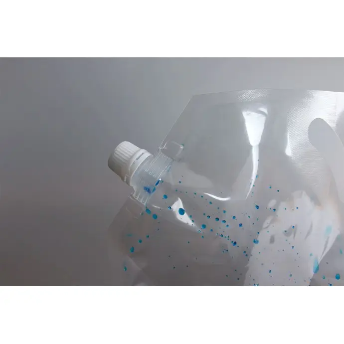8.5" x 11.0" x 4.0" O.D. stand up pouch with rounded corners and 15mm polypropylene spout