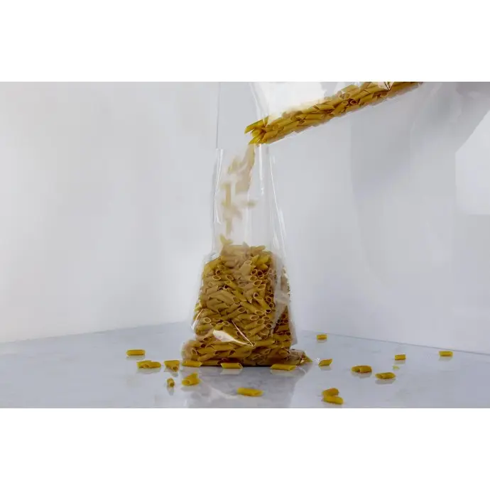 Material: This pouch is made from PAKVAC4.0, an FDA-approved food grade film used extensively for demanding vacuum applications. The film's clarity makes it an excellent choice for retail display, and it's extensibility (ability to stretch) allows it to conform to unique product geometry. The low oxygen transfer rate, high impact resistance, and low cost make it popular with meat, fish, nuts, dried fruit, jerky, and snack products.