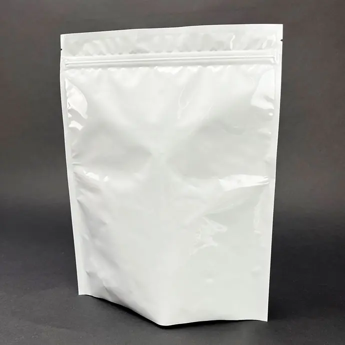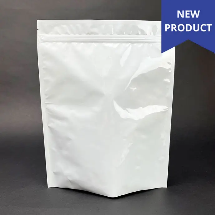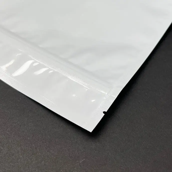 9.5" x 12.0" O.D. PAKVF4N48 white 3 side seal pouch with tamper evident zip seal and tear notch