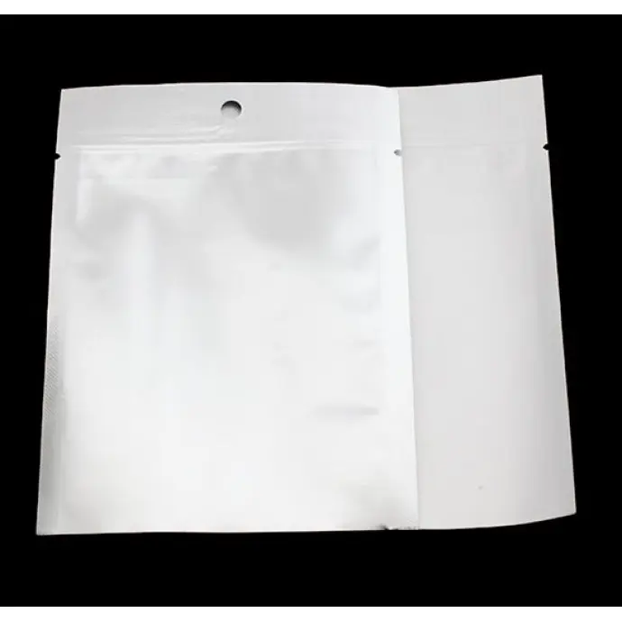 Vista style pouch with 3 side seal, header, hanghole and tear notch