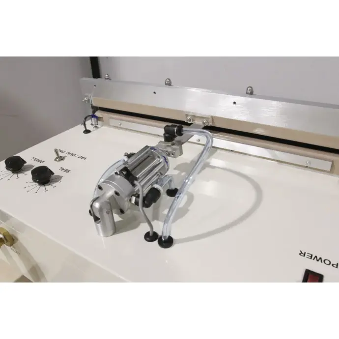 This unit's vacuum function is foot pedal operated, which allows you to pull a vacuum on your pouch as loose or tight as you see fit. And as of 11/06/2021, engineering upgrades give this sealer an improved pneumatic design and increased vacuum rate.
