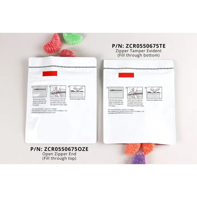 Fill Format: ZTE Zipper Tamper Evident, Fill Opposite of Zipper Side, REQUIRES SEAL
