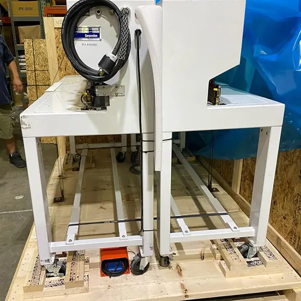 We are commited to making sure the machines we sell and service arrive in the best possible condition. No matter how far we are sending it, we make sure each of our machines gets one last verification process along with any crating needed for a safe journey. Once a machine has been tested and verified, it is affixed to a sturdy base and then a crate is constructed around it. This provides a secure, rigid structure to protect from most small bumps along the way.