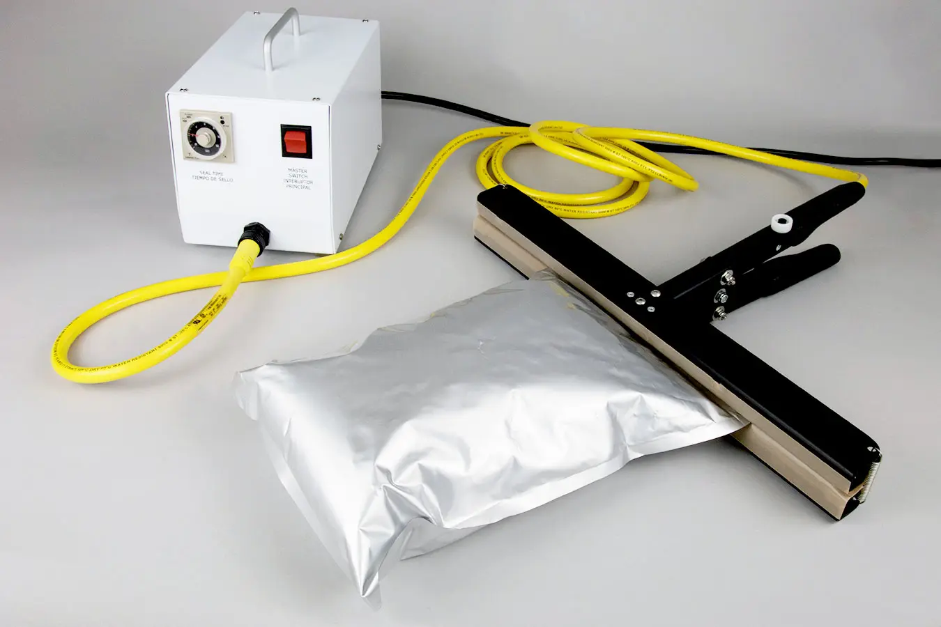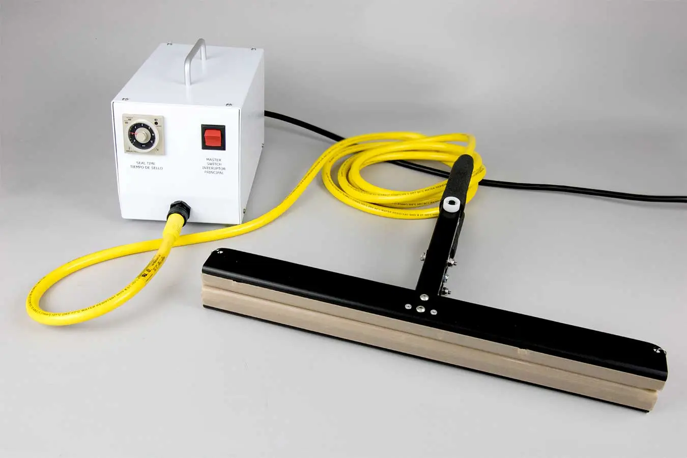 IMPAK Hand Held Impulse Heat Sealers are available with 8, 10, 12, 15, 18 and 26 inch seal lengths. Comes standard with timed heat. [See more details here]