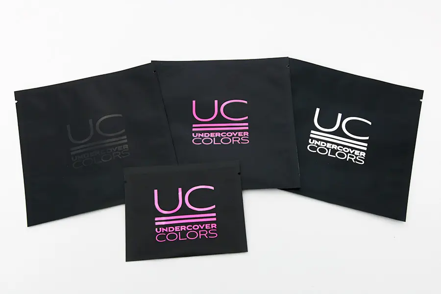 The added touch of glossy highlights is surprisingly effective for how simple it is. Brands that maximize the matte-gloss combination are highly intentional and creative with what areas they choose to “stand out.” Some industry examples of this include the Nulo cat food bag which uses a gloss shape on the cat to contrast the matte black background, as well as the Revelations Rx  and UC Undercover Colors pouches produced by IMPAK.
